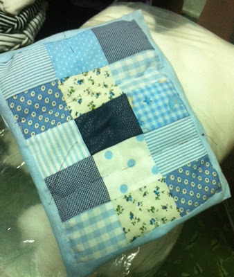 Ya he terminado mi trabajosa cama, con su colcha, sus cojines, cuadrantes y sabanas.